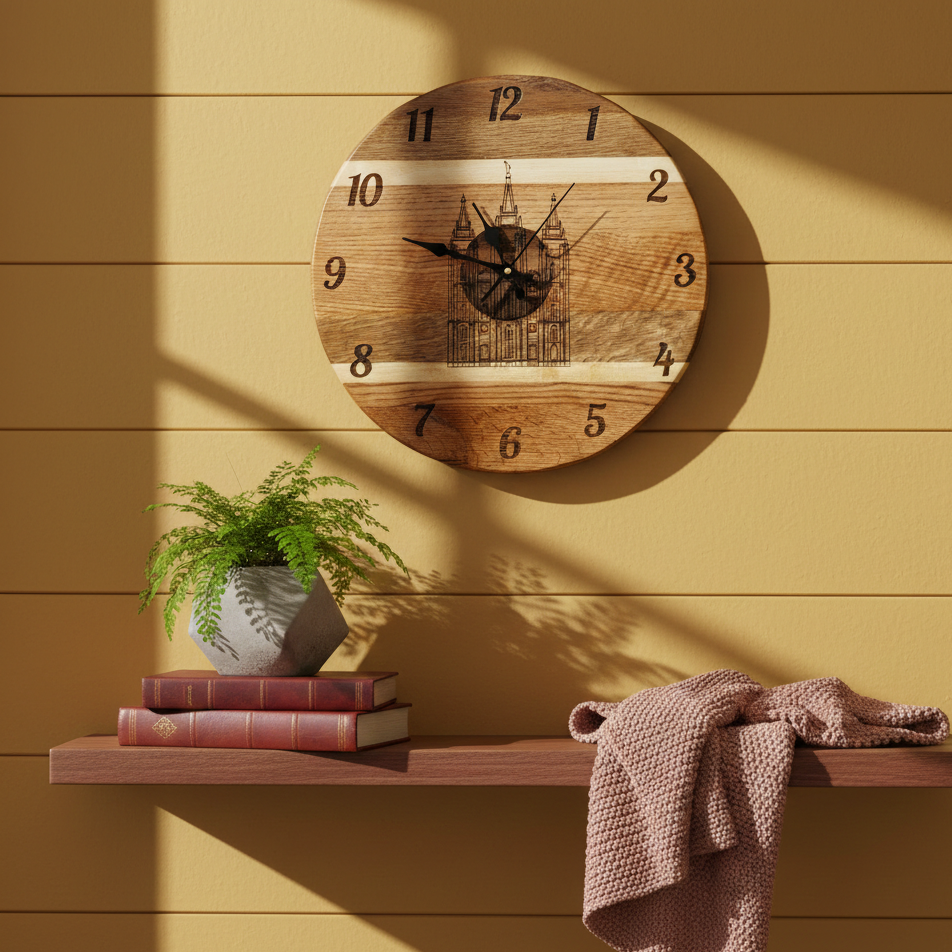 Temple Clock – Handcrafted Hardwood Wall Clock – 17"